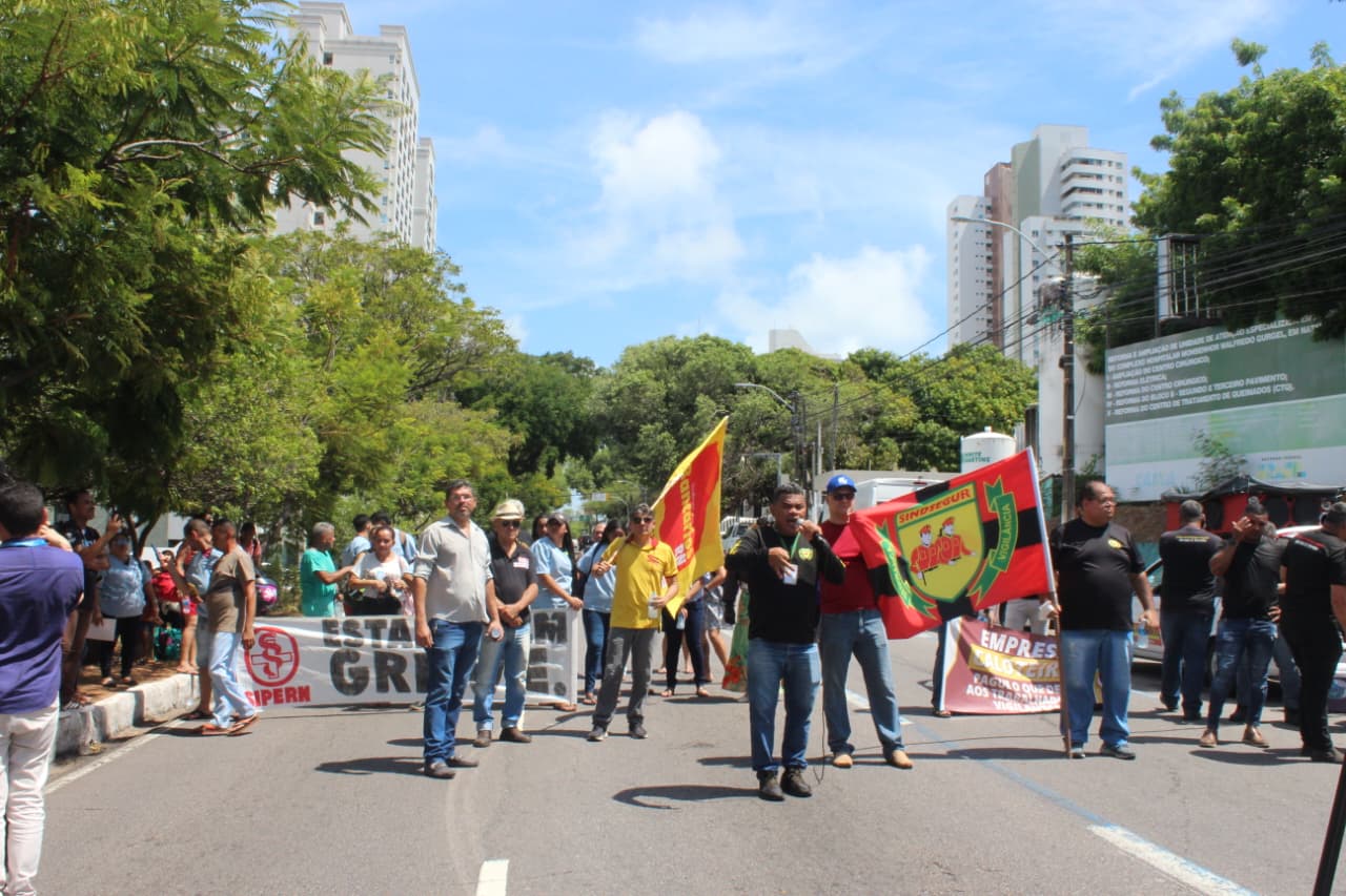 Sindsegur realiza protesto contra atraso no pagamento dos vigilantes da Interfort vinculados à SESAP